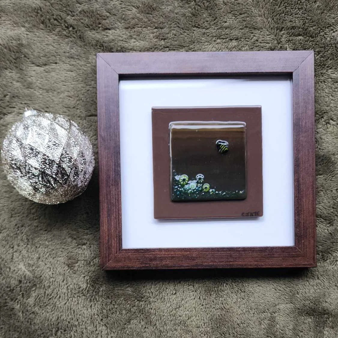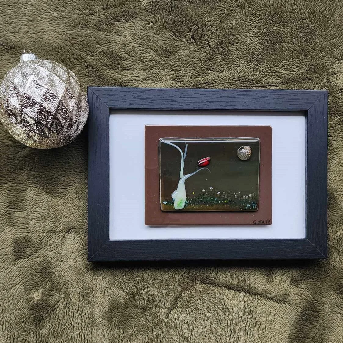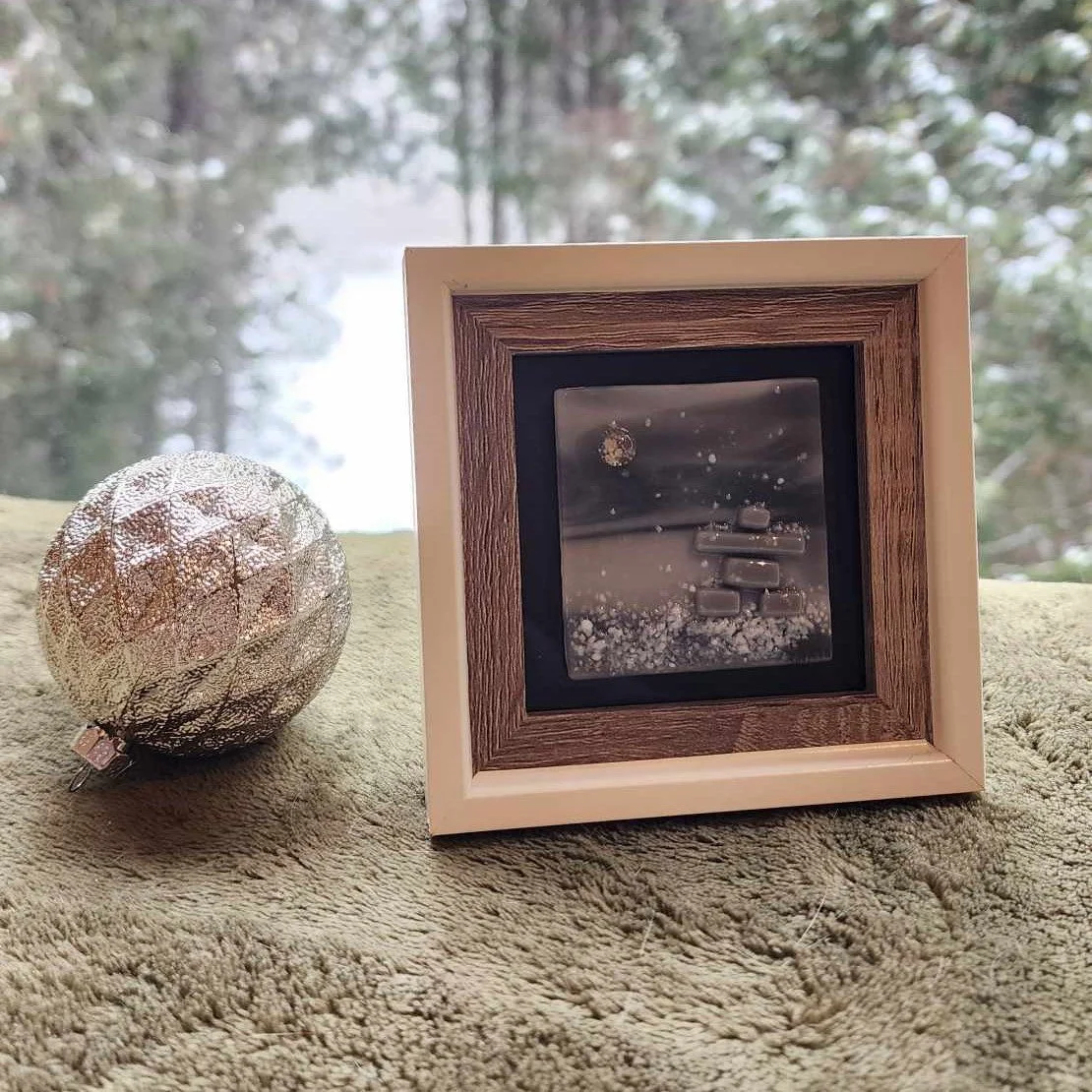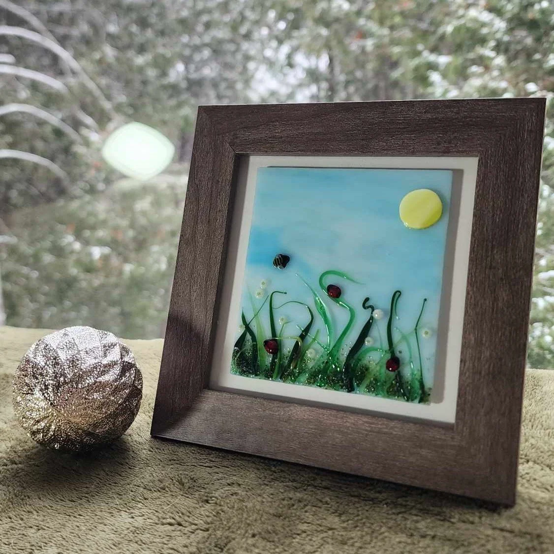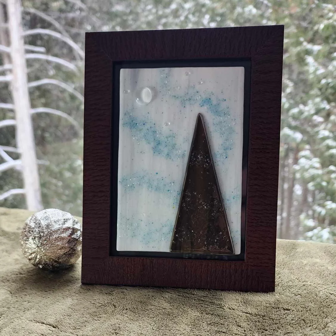 Inspired by Ontario’s “White Fish”, this piece is composed of solid, variated, and sparkly coloured glass scrap layers.